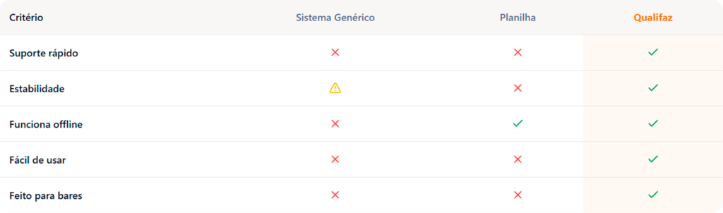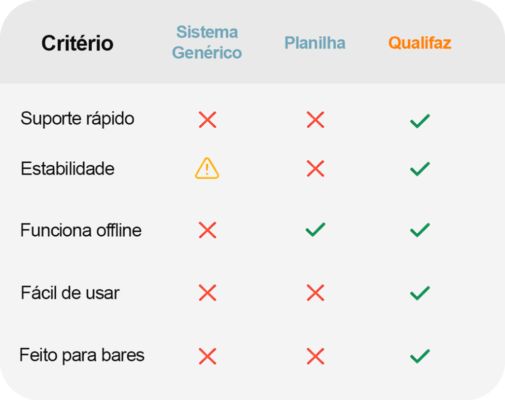 A diferença está nos detalhes. Mais que um sistema, a Qualifaz resolve problemas reais do seu dia a dia, com suporte de verdade, agilidade e tecnologia pensada pra quem vive a rotina intensa de um balcão, salão ou cozinha.